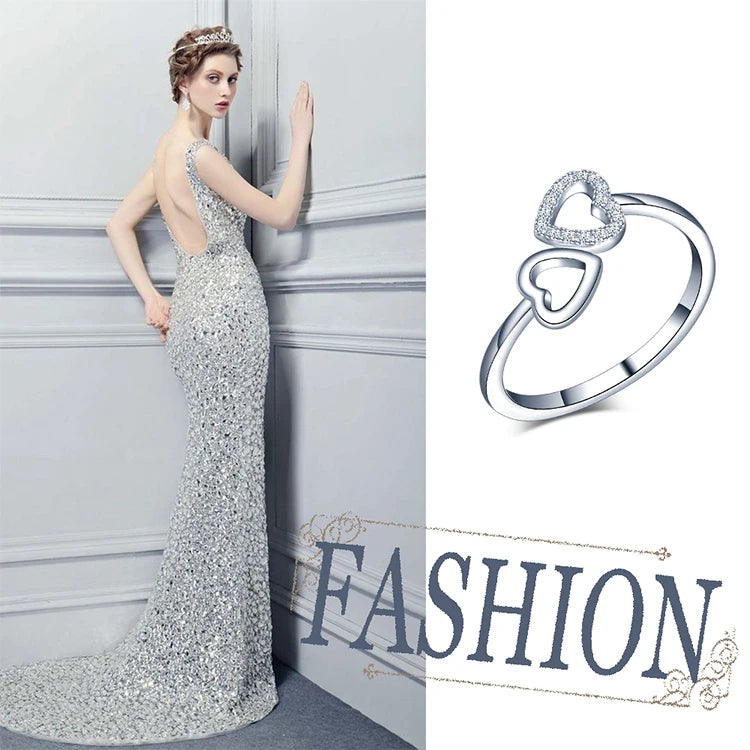Heart Open Ring 925 Silver Adjustable Rings Jewelry Valentines Day 2022